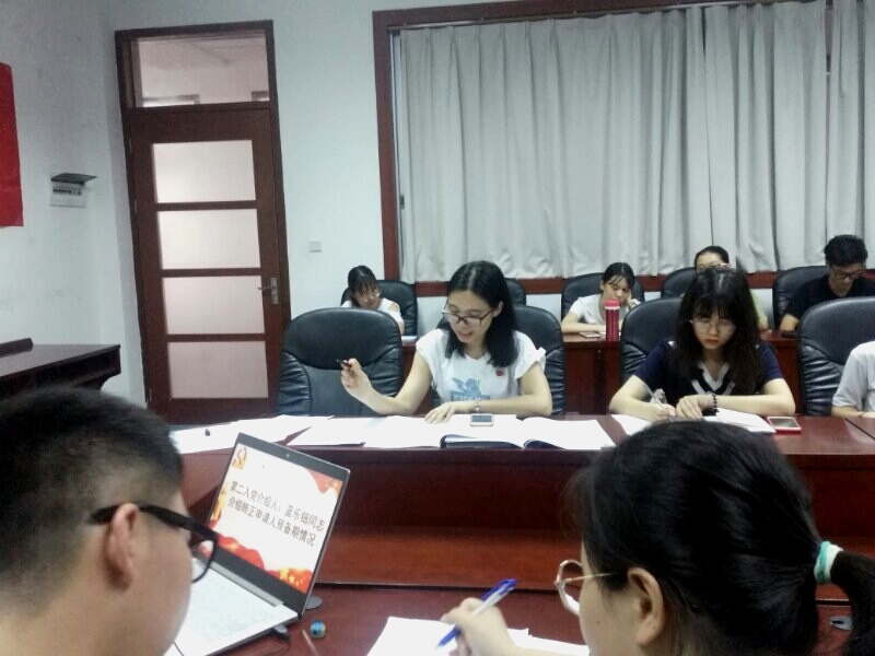 本次会议由支部委员杨利锋同志主持,主要讨论我支部李妹君等16位同志的转正问题。首先,由主持人宣读答辩程序后,16名预备党员依次进行了转正答辩。他们分别就一年来的学习、工作、生活等各方面的情况进行了汇报,同时,也对存在的问题和努力方向进行阐述。随后,预备党员们随机抽取两道有关党章、党规、时政方面的题目进行答辩,并实事求是,认真思考,积极作答。紧接着,支部党员根据16名预备党员在预备期内表现及现场的答辩情况进行自由发言,对16名申请转正的预备党员提出了意见和建议,转正申请人当即接受并表明了自己的态度,表示今后会改进不足,严格要求自己。最后,由拥有表决权的正式党员对李妹君等16名同志能否转为中共正式党员进行无记名投票表决,经7名与会正式党员的一致表决,预备党员李妹君等16名同志全票通过成为中国共产党正式党员,并由党支部书记蓝乐钿同志宣读了最终决议结果。