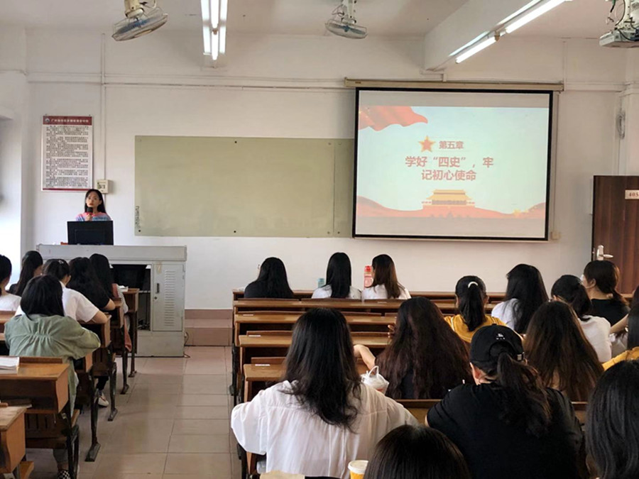 2020年初,习近平总书记在“不忘初心,牢记使命”主题教育总结大会首次提出学习党史、新中国史、改革开放史、社会主义发展史(四史)的概念。为加强19级学生对“四史”的了解学习,领会“四史”发展的精神内核,更好地引领新时代大学生的成长和发展,万象城allwincity官网19级学生党支部于11月20日在三教405开设“学习领会‘四史’精髓,争做新时代好青年”主题教育党课。参加本次党课的有19级学生党员、入党申请人、入党积极分子等,党课由19级学生党支部书记邓雪梅主讲。