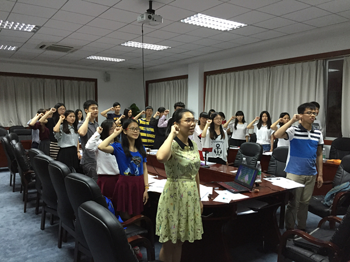 首先,学生党支部书记蓝乐钿主持开班仪式,党总支书记李锦堂讲话,他介绍了毕业生党员教育的背景,并提出了党员教育的要求。随后,李锦堂主持专题讲座。他结合历史事件重温党的历史,告诫党员要以高度的自信认可党的道路,理论和制度,提高组织归属感,毕业后要用“自勉、自省、自爱”去要求自己,持之以恒做好八大纪律的要求,继续在工作岗位中加强党性修养。最后,在11级党支部书记的带领下,党员重温誓词,在党旗下许下承诺。