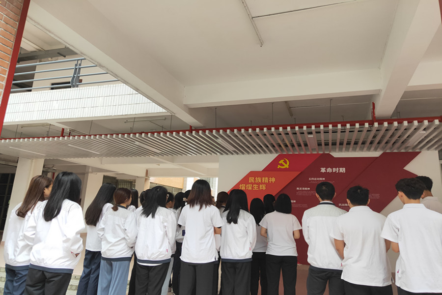 参观活动之前,党支部书记邓雪梅就本次学习作动员。本次参观学习由邓雪梅书记带领全体同学参观学习了“青思苑”,并对基地学习内容讲解。第一站为习近平总书记近年来在不同场合对青年大学生的讲话精神及其要求,明确当代大学生所需要的精神品质。其次,邓雪梅介绍了广东地区革命年代党员先锋,向同学们讲述自“五四”运动以来,广东地区无数革命英烈和共产党人前赴后继、英勇奋斗事迹,他们用生命和鲜血染红了这片土地,绘就了一幅幅可歌可泣的历史画卷。接着,同学们随着邓雪梅来到了精神动力学习展示墙,中国共产党走过的不同历史时期,每个时期会有不同的精神代表,邓雪梅书记就不同时期的精神做了一一讲解。随后邓雪梅书记介绍了学校课程思政研究中心、“四史”教育体验馆、党史影播间等。最后,同学们就自己感兴趣的模块进行参观学习和探讨交流。