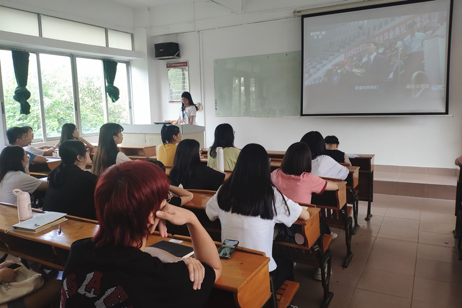 最后由廖小慧总结发言。针对影片结合同学们的实际,她做出了自己的心得分享。她认为大学生要明确职业生定位,做好职业生涯规划,努力实现自己的目标。同时,她对同学们提出了三点要求。第一,希望同学们始终保持初心,坚定自己的目标;第二,希望同学们认真学习党章党规,自觉用党章规范自己的一言一行;第三,希望同学们在建功立业新时代,找准定位并实现目标。
