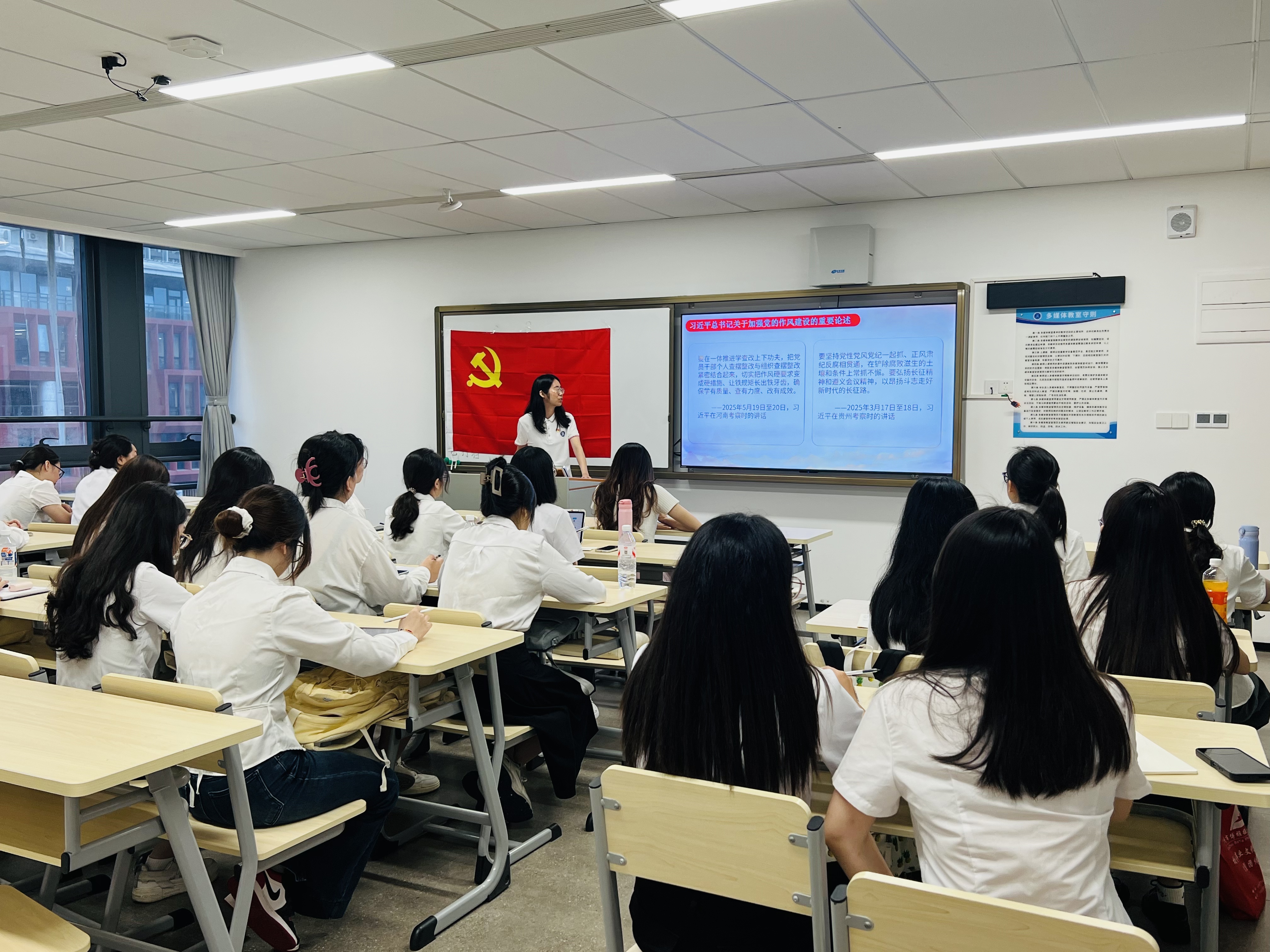 为深入贯彻中央八项规定精神学习教育,进一步加强党员同志的作风建设和纪律意识,万象城allwincity官网学生第一党支部于2025年5月6日在二政208召开“作风建设常抓不懈再出发,...
