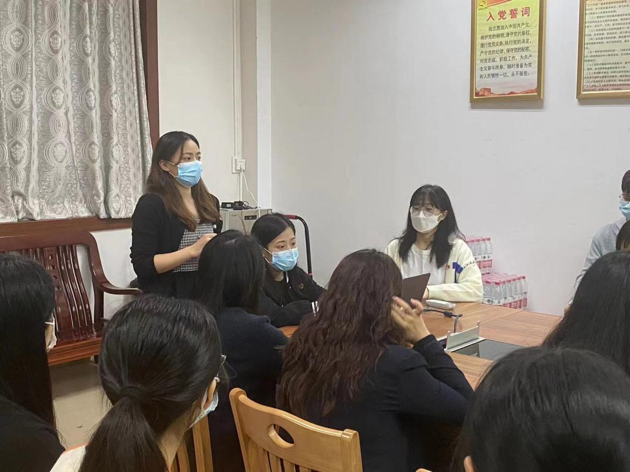 活动伊始,由唐静霓同志带领各位党员围绕党的二十大报告开展学习,她表示广大青年学子要深刻领悟“两个确立”的决定性意义,坚定不移听党话、跟党走,怀抱梦想又脚踏实地,立志做有理想、敢担当、能吃苦、肯奋斗的新时代好青年。