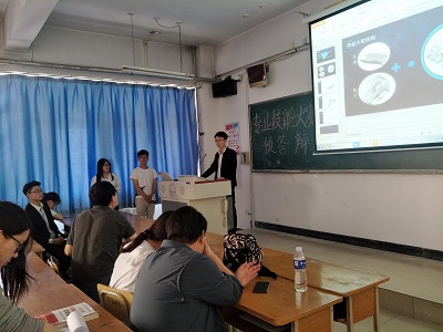 预答辩由分团委委员主持,介绍了预答辩的基本要求、答辩规则,评比标准等。答辩过程中,各参赛队代表通过ppt解说、实物展示等对本队作品进行了介绍。评委老师根据历年来的比赛经验,逐一对各参赛队进行了详细点评,提出了改进意见。
