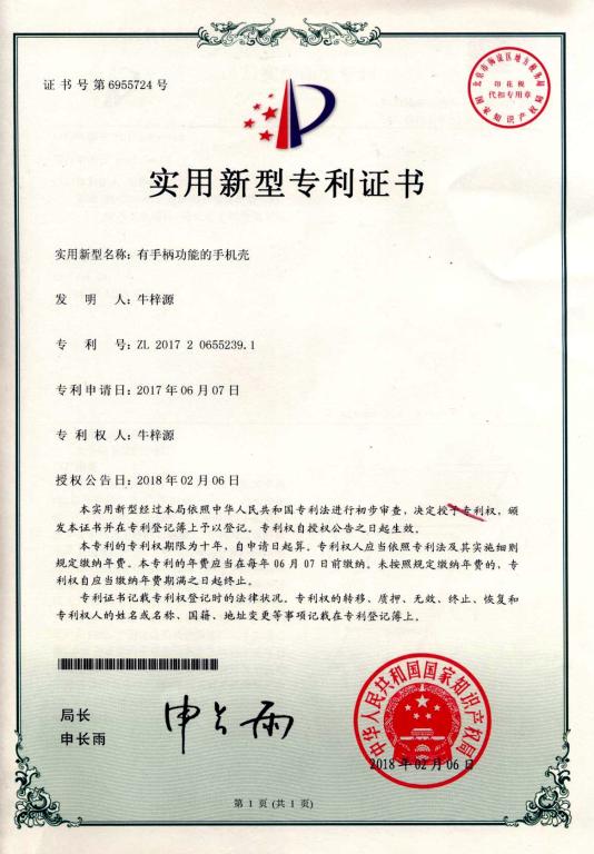 近日,从国家知识产权局获悉,BB贝博艾弗森官方网站2014级机械设计制造及其自动化专业牛梓源同学设计发明的《有手柄功能的手机壳》获批国家实用新型专利证书(专利号:ZL201720655239.1)。