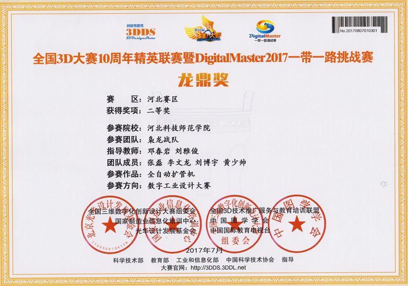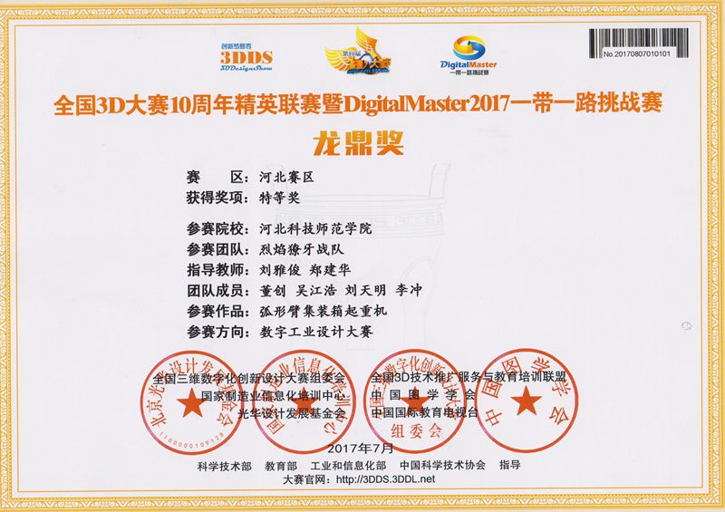 为参加全国3D大赛,BB贝博艾弗森官方网站组建了由机制专业和农机专业的同学4支团队,在邓春岩、刘雅俊、张小芹等老师的精心指导下,综合运用所学的机械制图和三维建模技术,精心设计,积极创新。近日,经全国相关领域专家和教授评审,荣获大赛(河北赛区)特等奖1项、二等奖3项。