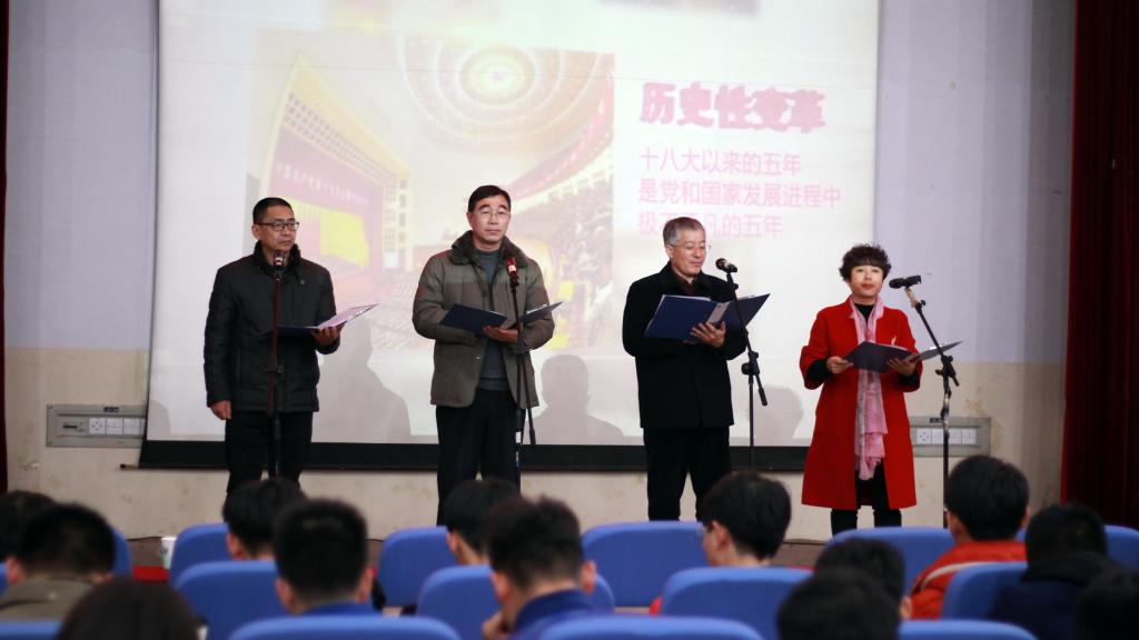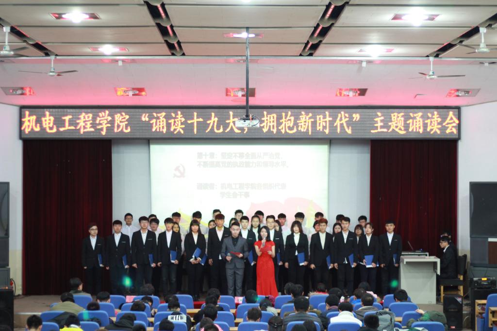 2017年12月20日下午,BB贝博艾弗森官方网站在昌黎校区学术报告厅举办了“诵读十九大,拥抱新时代”——十九大报告(节选)诵读会。机电学院领导班子成员、教师党员代表、学生党员、入党积极分子等600余人参加了本次诵读会。