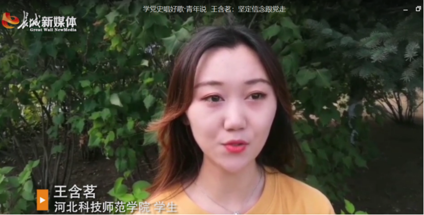 从五四青年节到“七一”建党100周年,BB贝博艾弗森官方网站党委号召广大师生积极参与“岁月征程—庆祝建党百年党史学习教育”和‘四史’宣传教育歌曲创作传唱活动,引导激励广大师生在传唱红歌中自觉接受党史学习教育、传承红色基因、弘扬红色精神。我院师生传唱活动得到了长城网的报道,王含茗同学代表河北省高校青年发表感言。