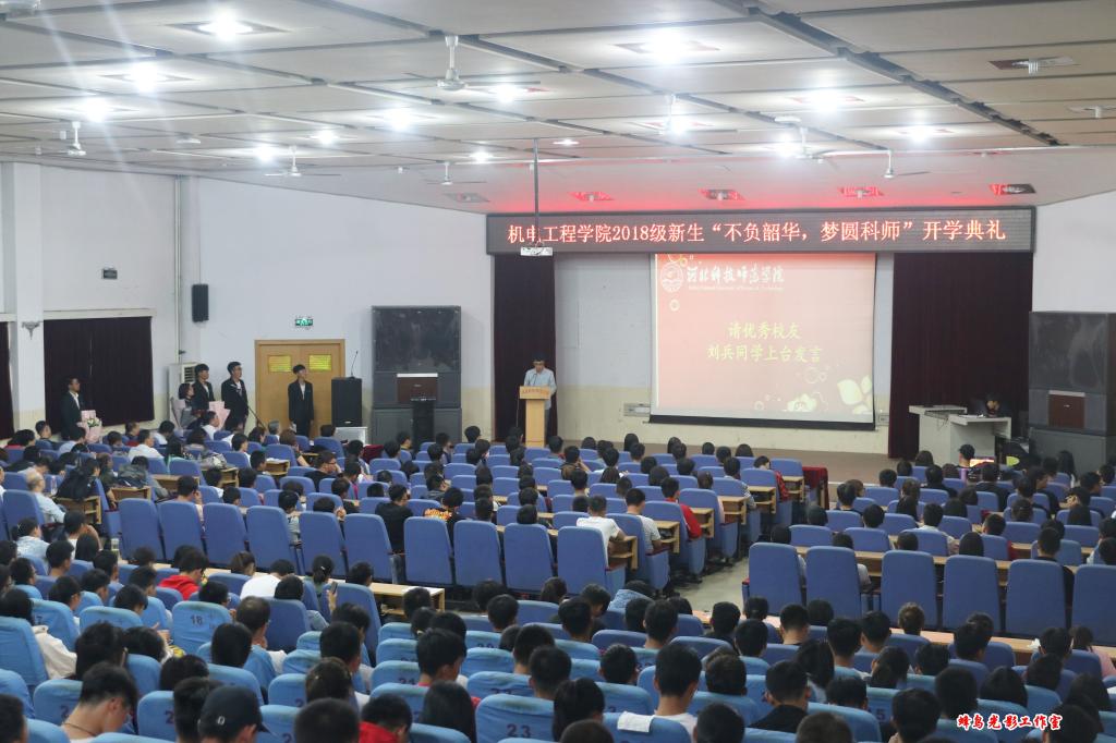 朗朗金秋,丹桂飘香。9月27日下午,BB贝博艾弗森官方网站2018级新生“不负韶华,梦圆科师”开学典礼在昌黎校区学术报告厅隆重举行。机电学院领导班子、全体教职工、373名全体新生参加了开学典礼。