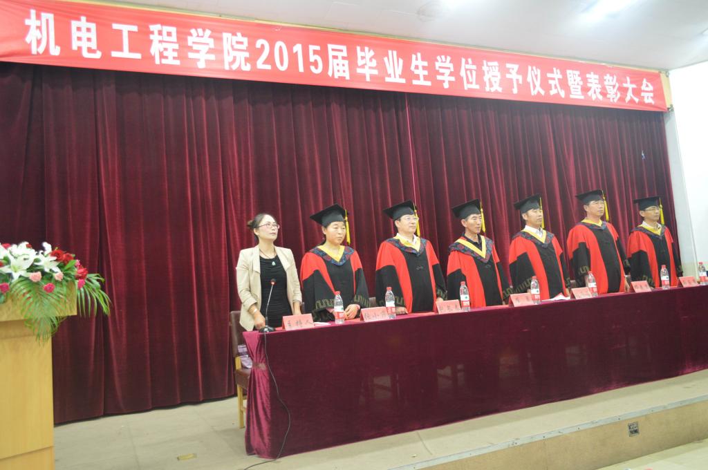 2015年6月14日下午2点30分,BB贝博艾弗森官方网站于学术报告厅举行了2015毕业生学位授予仪式暨表彰大会。出席大会的嘉宾有:BB贝博艾弗森官方网站党委书记崔勇、BB贝博艾弗森官方网站院院长刘荣昌、BB贝博艾弗森官方网站副院长包长春、BB贝博艾弗森官方网站党委副书记副院长邓春岩、电气工程教学部主任马玉泉、机械制造教学部主任张小芹,以及毕业班主任和学工办的老师们。