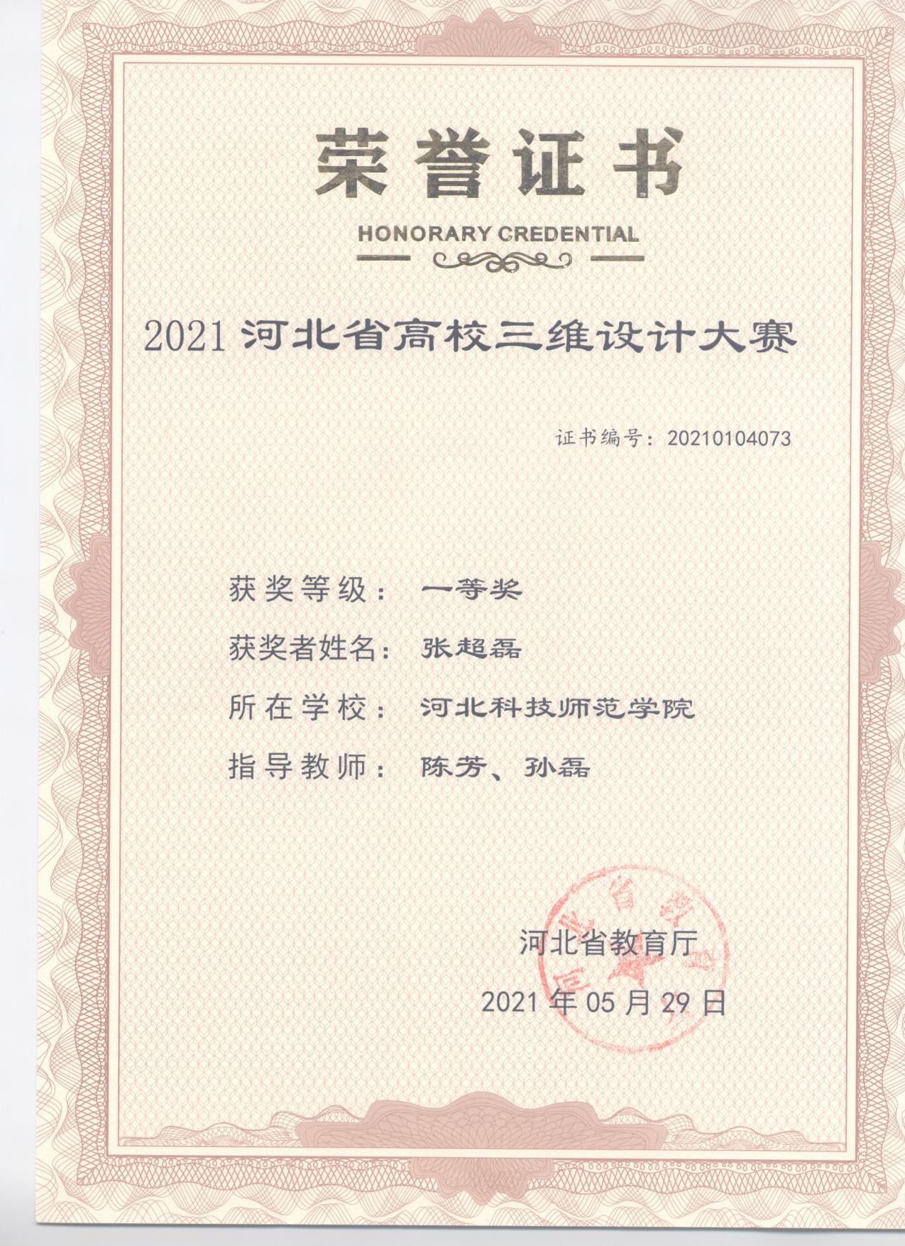近日,由河北省教育厅主办、河北省工程图学学会承办的2021年河北省高校制图与构型能力大赛和三维设计大赛通过线上方式成功举办。BB贝博艾弗森官方网站10名学生组成的2支代表队分别参加了两个项目的比赛,最终,获得个人一等奖两项、个人二等奖两项、个人三等奖5项和团体二等奖一项