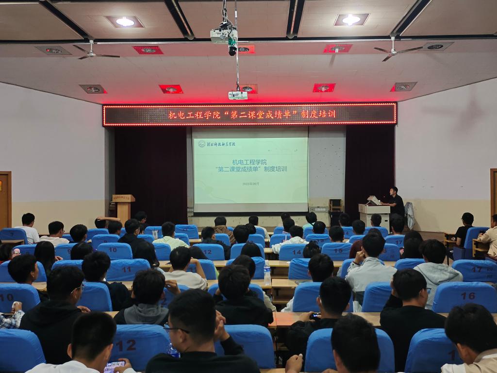 按照校团委安排部署,2023926日晚,机电工程学院在昌黎校区学术报告厅召开“第二课堂成绩单”制度培训会,2023级本科生参加此次培训会。