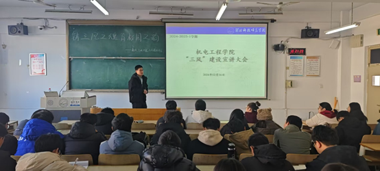 此次学风建设大会是学院加强三风建设工作的系列活动之一,宣讲由学院主管学生工作副书记主讲,讲座先对学校下发的“三风”建设相关文件进行了解读,详细介绍了本科学生学业预警管理办法及相关要求。通过系列课堂实录照片以及各专业的课程不通过数据,对当前学生学习存在的问题进行了剖析并提出整改意见。要求同学们重新认识学习的重要性,做好自我约束与管理,树立切合实际的预期目标,锤炼坚忍不拔的品质,合理制定未来个人发展规划。