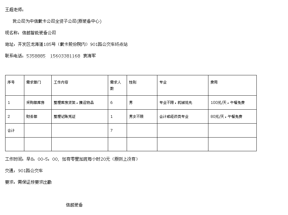 中信戴卡公司全资子公司(原装备中心)招聘信息