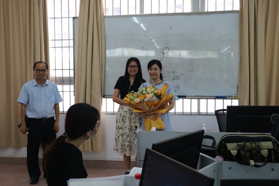 最后,由参加培训课程的青年教师代表李莉向梁菲菲博士献上鲜花并合影留念。(通讯员:储萍)