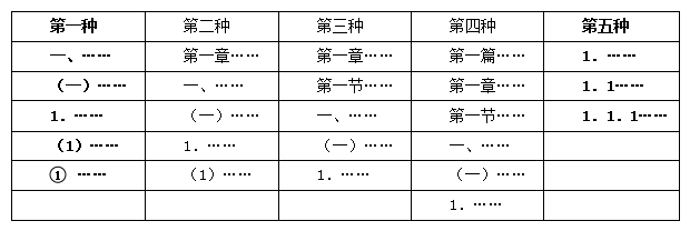 各层标题均单独占行。第一种格式各层级均应左对齐缩进2字符放置。一级标题使用四号黑体,加粗;其余使用小四号宋体,加粗,末尾不加标点。