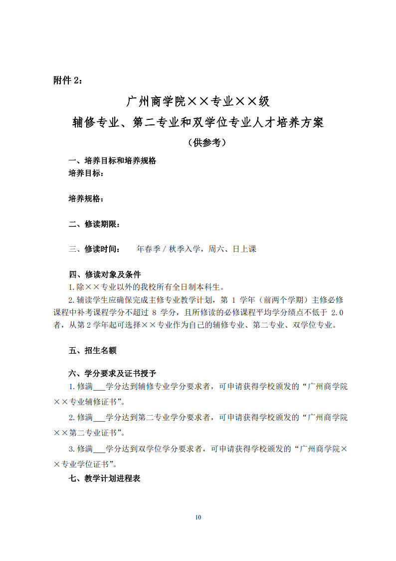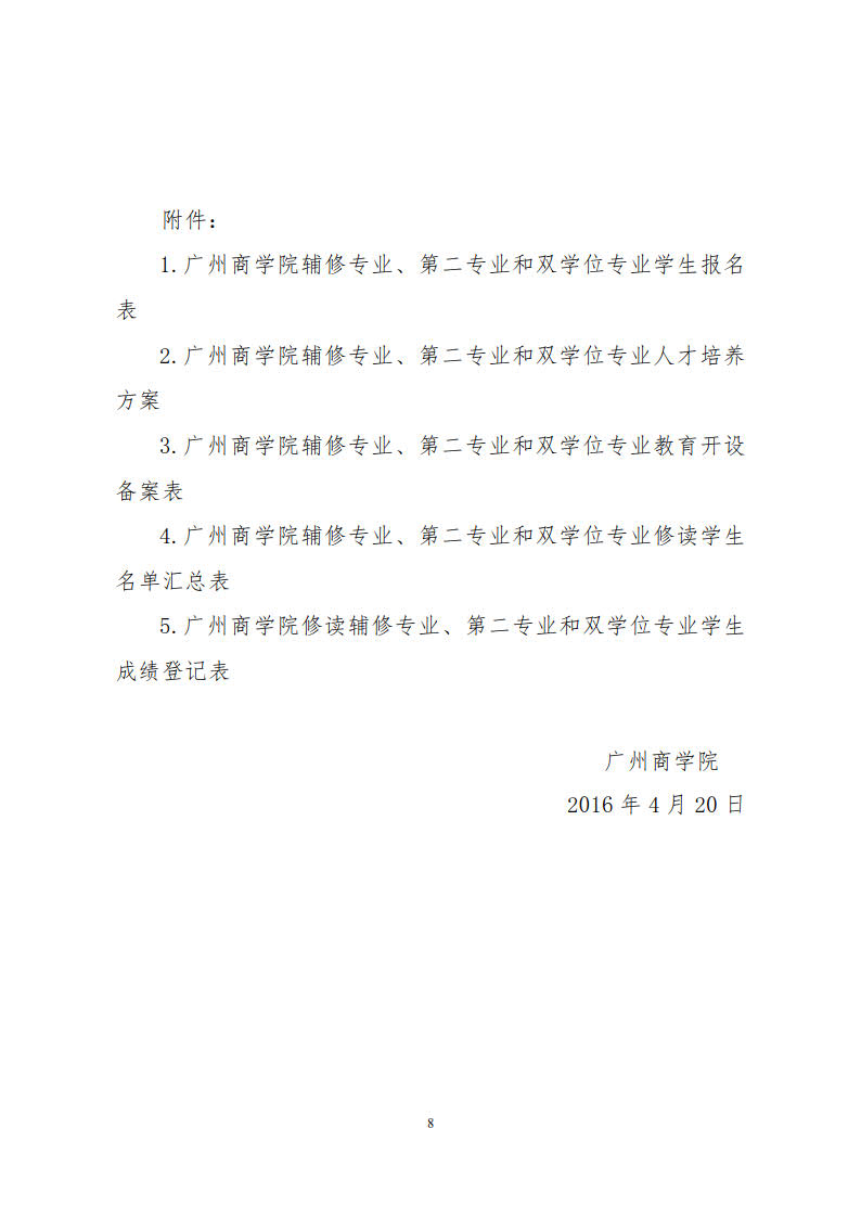 广州商学院辅修专业、第二专业、双学位专业教育管理实施办法