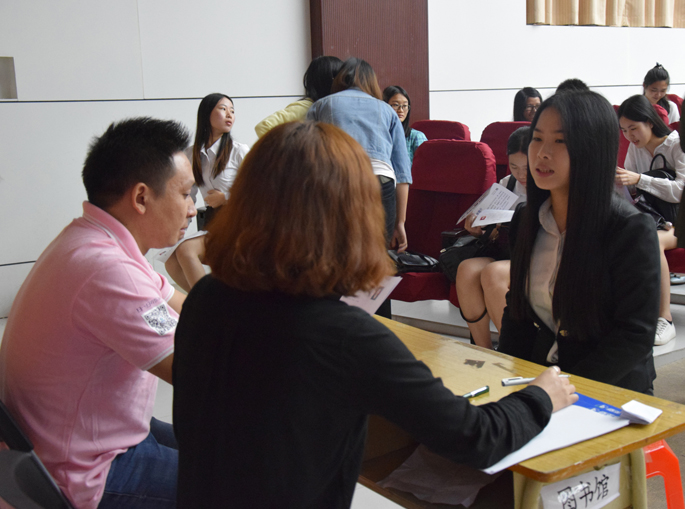 宣讲会上,定雄武首先介绍了佰平教育集团是以广东佰平人才培训有限公司为主体,以培训会计专业证书应试教育、会计职业技能的华南地区第一大培训机构,并就公司篇、认识篇、招聘篇、福利篇等四个部分详细介绍了企业的情况,并就此次招聘岗位进行了说明。同时,定雄武还表示佰平教育集团始终坚持以“服务”为核心、创新理念、强化意识、打造品牌,强调企业卖的不是产品,而是文化。通过不断创新,贯彻“人无我有,人新我变”的策略,成为培训行业的标杆。最后,定雄武希望万象城毕业生能明确自身的定位,更好地展现自我,实现自己的人生价值。宣讲结束后,直接进入招聘的面试环节,佰平教育集团工作人员直接在图书馆报告厅的现场招贤纳士,进行第一、二轮的面试,现场秩序井然