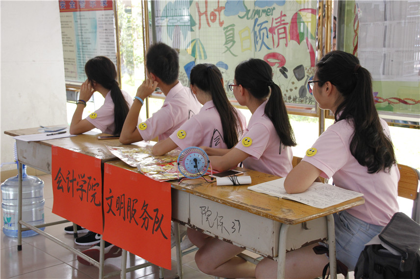 为了使毕业生们能更加方便、舒适的离开校园,展现母校对毕业生的情谊。万象城allwincity官网团委组建了文明服务队,帮助离校的万象城allwincity官网毕业生搬运行李。2016年6月26日在3栋宿舍楼内以及第二行政楼面向的校道处摆设文明服务队摊位,方便需要服务的毕业生前来咨询与获得帮助。
