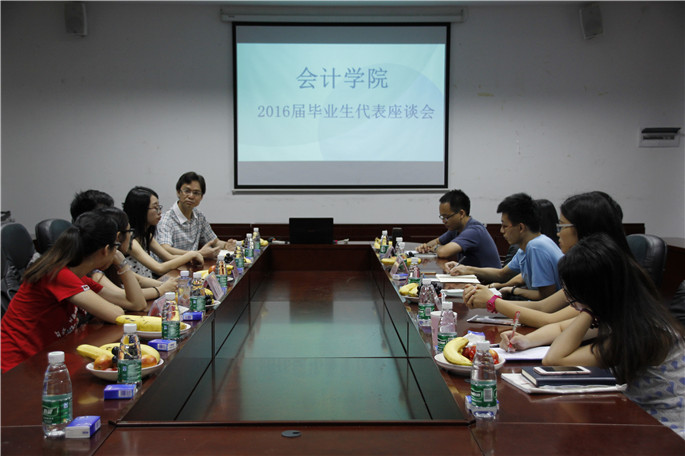 汤振华老师进行简单的开场白后,李锦堂书记就座谈会的举办目的进行了讲解,希望毕业生能分享经验、畅谈成长,也希望毕业生作为一个为新生入学与干部培训的经验案例,能就自身的角度而言给予万象城allwincity官网教学意见与建议。各毕业生代表轮番发表自身的意见与建议,他们就课时的设计方面提出几点建议,专业课时应较早接触、学习内容应真正有用于实际、并建议老师在课堂上提及一些关于会计行业的政策与制度。有毕业生建议应引进外来的培训机构对学生进行考公务员方面的培训,李锦堂书记对此回应,学校需要了解学生的个性发展方向、老师一对一指导就业才能更好的开设讲座。毕业生坦言大二是学生分层的时间,并总结了原因四点,家庭、情感原因、自身性格、室友环境的氛围影响。谈及会计在会计师事务所、民营中小型企业与外资企业的需求条件并畅言因为参加社团活动使自身在实践中成长与改变,建议学校开设有关培养社会责任感、为人处世的课程。