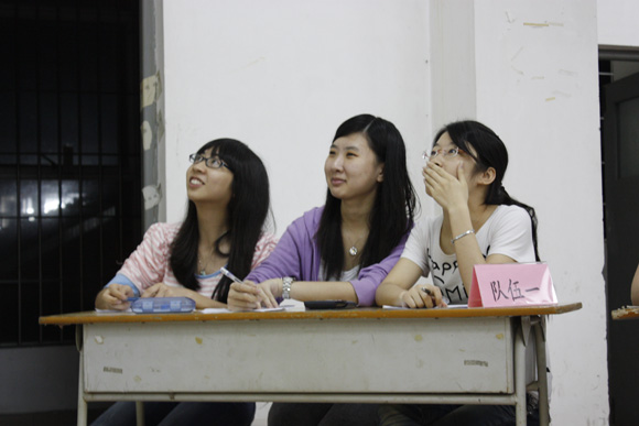 活动在主持人的引导下迅速拉开帷幕。首先上场进行比赛的是10级的5队精英队伍,在第一轮的必答题中各队比分不相上下。接着,进入第二轮的抢答环节,各队选手勇气信心十足,很快就把比分拉开了。最后的风险题,选手们继续沉着应战,目标夺冠。随着,在一片掌声与欢呼声中,上场的是09级的精英们,他们施展浑身解数,各队的分数不分上下,在活动现场中掀起阵阵高潮。最后,在响亮而富有特色的口号中,08级的师兄师姐为观众上演了一场激烈的比赛大战。第一场的必答环节中尽管题难,但各队精英快而准,比分无法拉开差距,接着的抢答环节,比分依旧难比高低,最后的风险题精英选手们想高难度挑战,几乎全选择难度最高的多项题,尽管风险如此之大,但最终比下来,其中两对精英以70分比平。最后,大赛决定以抢登游戏把08级的夺冠之战拉向高潮,两队派出代表蓄势待发,在陈秀纯老师的一声“停”下,女生抢到答题机会并一题定冠,摘得08级的冠军。