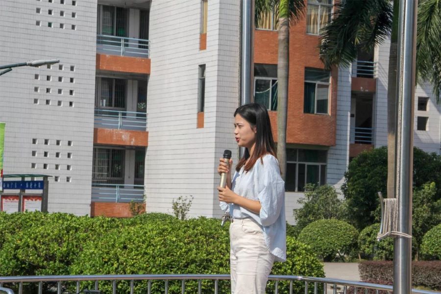 17级财务管理2团支部团员代表林铄姿作国旗下的讲话。她表示,祖国过去70年的翻天覆地的变化,证明了国家强盛的实力。作为一名共青团员,应努力做到不忘初心、牢记使命,为国家和民族做贡献。同时,她也结合自身两年多的大学学习生涯阐述对“不忘初心”的深刻体会。此外,她还引用习近平总书记在五四运动100周年对青年大学生的寄语,希望大家能够携手并进,不忘初心,牢记使命,助力祖国繁荣昌盛。