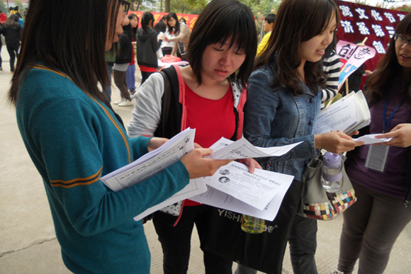 会计系首届“点亮会计人生”系列活动旨在让会计学子们了解更多知识,打好扎实专业功底。为了让广大师生对“点亮会计人生”系列活动有更深入的认识,2011年3月11日中午11:00~12:30与下午5:00~6:30期间,会计系团委秘书处、网络部、编辑部三大部门成员在西饼屋对面竖起了“点亮会计人生”的鲜明旗号,进行了火热的摆摊宣传活动。