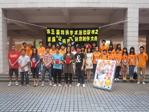 比赛选手分为两组,活动规则是从教学楼五楼投下鸡蛋,鸡蛋不破碎,并落到楼下指定区域就得分,而且保护鸡蛋的装置越轻巧得分就越高。下午3:00比赛开始了,选手们依次向靶心投下鸡蛋,每次有成功着陆的鸡蛋时,现场便响起热烈的欢呼声和掌声。经过一个多小时的激烈挑战,有三组选手脱颖而出:张送妹、蔡榕容、许丽、伦小山、罗翠凤、叶思欣小组以125分的成绩荣获一等奖,刘斯琪、陈寰小组以100分的成绩获得二等奖,三等奖则由林凤珍、高东随、李燕玲小组获得。