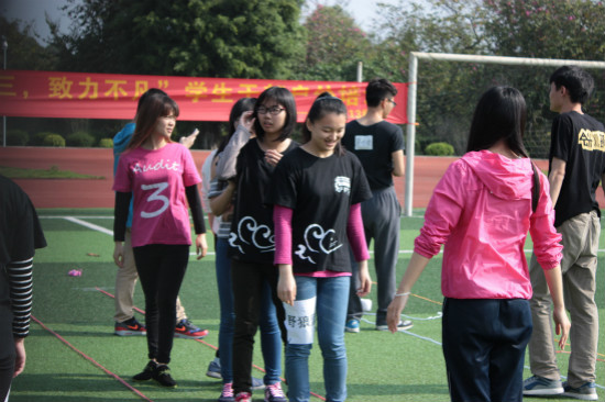 第一项目是“你比我猜”,分两轮,每轮五组同时进行,固定一位同学比划,其余五位同学在5分钟内轮流猜,各种神动作、神表情、神答案让在场人员笑声不止,最终兄弟萌队以答对18个的好成绩夺得本环节冠军。第二个项目是“盲人指路”,每组六位人员分为三个小分队同时出发,最后到达时间为该组分数,组员之间斗智斗勇和即时练就的默契,让我们不禁鼓掌呐喊。第三个项目是“敏捷躲避”,每组分别在场外向场内的另外四组人员扔纸球,参赛组依次递推,以最短时间内砸中所有人的那个组即胜出。最后一个项目则是大家期待已久的“撕名牌”,响震足球场上空的是大家疯狂的笑声,活跃整个足球场的是大家青春的身影,到最后梁华庚同学以其突出的耐力和韧性夺得了“最佳王者”。