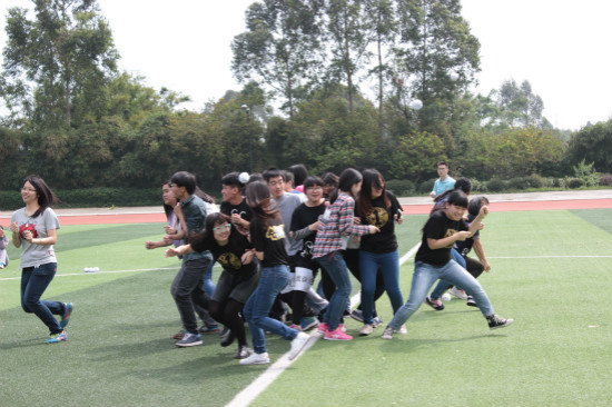 本次活动以游戏为主线,通过团队合作、斗智斗勇、惊险刺激等游戏项目让整个足球场沸腾。活动开始时,级委负责人员向各班工作人员讲解游戏规则和裁判规则,并进行参赛同学的分组。活动采取随机分组的方式,每六个同学为一组,组名幽默风趣,“英雄联盟队、智联队、百事队、兄弟萌、无敌联盟”等让大家记忆深刻。