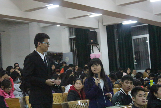 11月30日晚,会计系在A109举行新生杯辩论赛总决赛,会计系团委书记蓝乐钿、学院及各系辩论队队长、学院学生会、会计系三大学生机构干部观看了比赛。