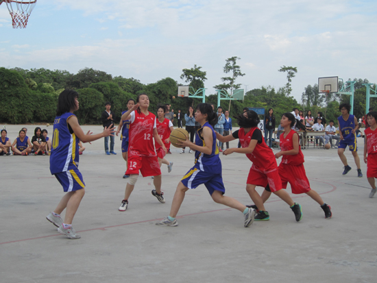 哨音响起,比赛开始。经济系女篮先拔头筹,我系女篮2:4暂时落后。第二节,我系女篮轮换阵容,比起首发,替补球员更加冷静睿智,转变进攻战略,加强防守,比分被定格在8:4。换边再战,我系球员采取全场紧逼策略,6号球员何嘉怡连续抢断三球,快攻得分,第三节结束,我系女篮16:8暂时领先。末节,经济系顽强拼搏,14号球员带球突破,冲破我系球员严格防守,上篮得分。连续两球上篮加上内线得分,经济系反攻势头凶猛,场上比分是18:14,分差被迅速缩小。我系女篮从容不惊,稳扎稳打,调整战术,见招拆招。