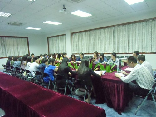 为提高会计系教学质量,促进学风、教风建设。全面了解学生对各科老师的评价和建议,深入了解学生的学习情况,帮助学生解决所遇到的问题。华南师范大学增城学院会计系10级于2012年04月23日19:15,在D308举行期中教学座谈会。莅临本次座谈会的嘉宾分别有会计系副主任凌辉贤老师、会计系党总支王龙华书记、10级辅导员陈秀纯老师与会计系10级各班的学生代表。
