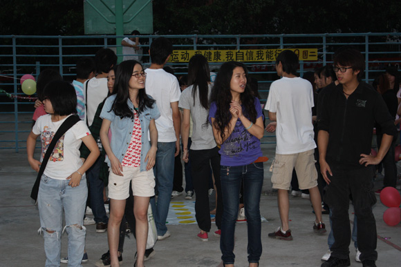 活动在劲歌热舞中拉开序幕。10级以“计算机和英语”为主题的系列活,首先取得开门红,在摆摊开始不久,便引来一大群活动爱好者,他们快乐地在各摊点中穿梭,在各种游戏中玩得不亦乐乎!李锦堂书记也被各种有趣的活动吸引过来,在10级解说员的引导下,李书记也很快参与其中,活动现场一片欢声。而以“健康节”为主题的09级也用各种各样妙趣横生的游戏吸引参赛者,其中饮食、心理、生理健康特别受到同学们的喜爱,参与活动的同学源源不断。