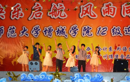 华南师范大学增城学院四系联合举办的迎新晚会圆满结束。学生们用歌声寄托对学院、师长们的深深谢意,用舞姿诠释年轻的朝气,用心搭建各系的友谊。愿12级学生能在大学中寻找一片属于自己的舞台,尽情展现青春与朝气。