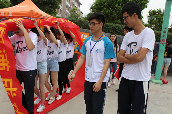 本次趣味运动会以“青春如火,运动你我”为主题,亦是我系响应全国学联号召,践行“走下网络 走出宿舍 走进操场”主题群众性课外体育锻炼活动的具体表现,活动采取竞赛形式进行,充分调动了同学们的热情,让大家都能够积极参与其中。一声哨下,三个比赛同时进行,场内瞬间响起了激烈的加油声,欢呼声,呐喊声。这边“团队滚带”,选手们齐呼“一、二、一、二”,让纸带有条不紊地滚动起来。那边“背夹气球”大家都屏住呼吸,如螃蟹般小心翼翼地运球。而那边的“投篮机”更是牵动了观众的心弦,每投进一颗球都引来大家阵阵欢呼。最后,大家都聚集在一起进行“长龙传球”游戏。各组选手齐心协力,充分发扬了“勇于拼搏,敢于胜利”的精神,将比赛推上了一个又一个高潮。