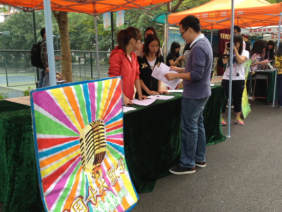 为更好地开展第八届校园文化艺术节之“音乐点亮青春,歌声传递梦想”校园十大歌手比赛的各项工作,宣传有关本次比赛的各项信息,提高活动的影响力。从10月29日上午11点开始,会计系团委学生会干部干事们在面包铺对面开展了为期三天的摆摊宣传活动。