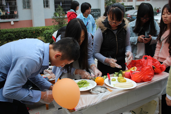 为了丰富校园文化生活,更好的培养同学们的创新意识和实践能力,会计系学生会女生部于11月18日16:00在舞蹈室前的空地举行水果拼盘创意大赛。莅临本次活动的嘉宾有学生会指导老师陈秀纯、14级辅导员吴梦、14级辅导员罗彩玲、学院学生会女生部部长方雪莉以及会计系学生会主席甘远锌。