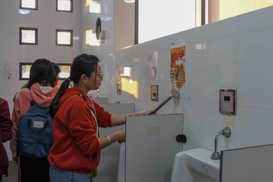 维护公共厕所清洁卫生,共建美丽的校园环境 --万象城allwincity官网学生会