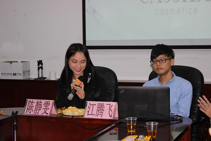 首先,由陈静雯同学向同学们分享了她做微商的心得体会,在选择做微商的过程中,如何去选择一个合适的品牌并且做好来是需要一步一步积累的。在介绍自己代理的产品时,她提出如果想要把一个品牌做强大,就要学会发现产品的亮点。微商无处不在,掌握一定的技巧和方法并加以运用,能够更胜一筹;江腾飞同学则分享了他的创业项目及创业历程的经验,从初接触创业,参与悟空校园、黑白校园等创业项目,到后来开始接触创业比赛,创立广商青年说公众号等等,这些经验都给自己的大学经历增添了一份色彩,开阔了自己的眼界。同时他也阐述身后有个有力的支柱创业团队,能够跟一群志同道合的人,有着共同的理念也是很重要的。