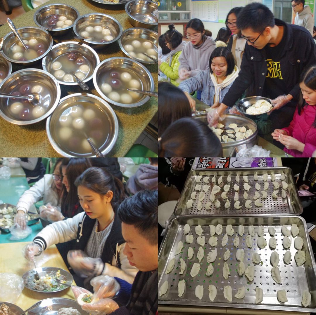 在等待热腾腾的饺子出炉时,香喷喷、圆鼓鼓的汤圆已经被一碗一碗地端上了桌面,伴随着每位成员的身边飘散着的汤圆香甜的热气和幸福温暖的气息,振奋人心的“吃饺子”环节也开始了。期间,学生会指导老师梁亮也与干部们一同吃汤圆吃饺子,就如同大家长带着孩子们在冷冬围在一团一边吃着热腾腾的饺子和汤圆一边聊聊天,其乐融融。干部们吃着自己包的香喷喷的饺子,也充分地感受到了集体的温暖,也为自己的大学生活留下了一次美好的回忆。