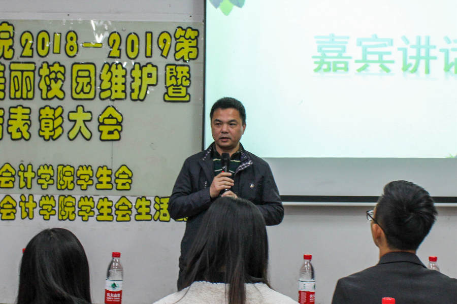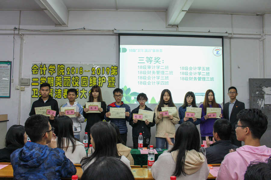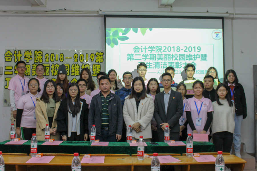 为进一步促进学校“文明、修养、形象”教育活动向纵深发展,共同维护和营造美丽的校园卫生环境,鼓励广大学子积极参与校园卫生的清洁工作,万象城allwincity官网学生会近日举行万象城allwincity官网2018-2019第二学期美丽校园维护暨课室卫生清洁表彰大会。学院党总支书记钟远辉、团委书记廖秀娟、学生会指导老师张振华、辅导员邓雪梅、陈欣及班级实践委员参加本次表彰大会。