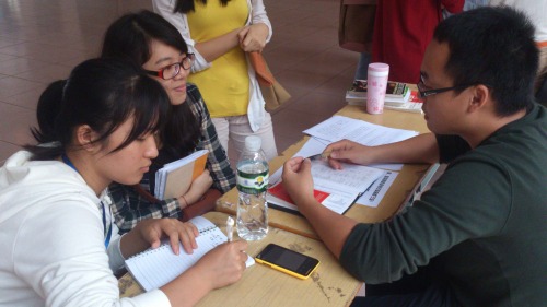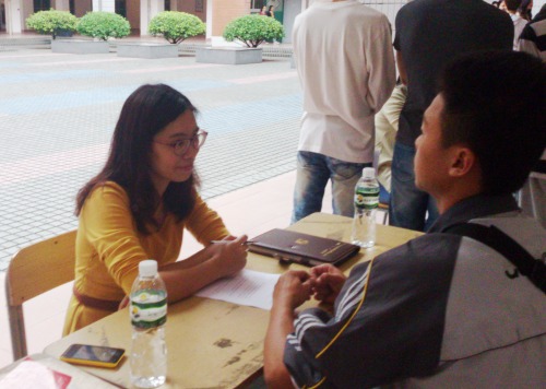 为了帮助新生更好的适应大学的学习和生活,形成良好的学风,提高新生学习能力,学院于11月22日下午在教学楼架空层举行2012级新生开放日。会计系12级辅导员汤振华、11级辅导员蓝乐钿参与咨询会中,解答新生的问题。