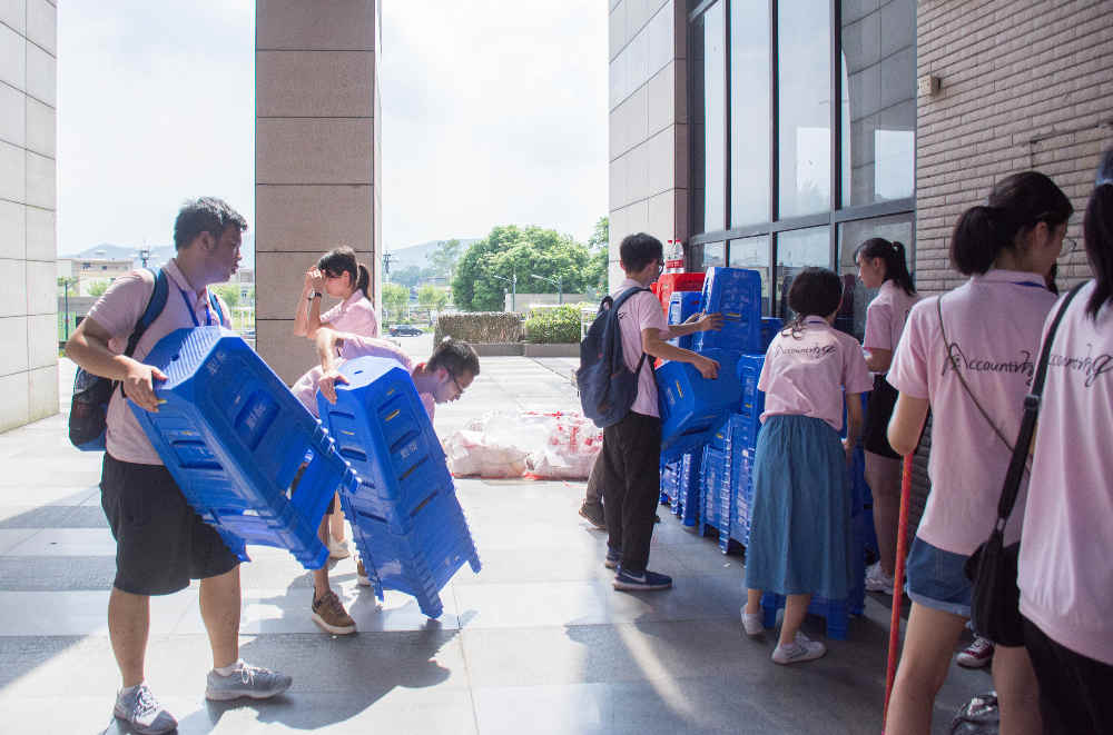 这天,有那么一群“小粉衣”(万象城allwincity官网团委、学生会干部),他们用辛劳的付出、真情的服务为即将踏入社会的师兄师姐们送上最真挚的祝福——早上六点二十五分,团学干部们便开始投入工作中。从上午毕业典礼的结束到下午的学位授予,“小粉衣”们兢兢业业坚守自己的岗位,做好整队、带队、引导、疏导等工作,直到下午四点半收拾好并打扫好会场才结束工作,耗时605分钟给予2019届师兄师姐们精心的筹备、暖心的陪伴、真诚的践行。