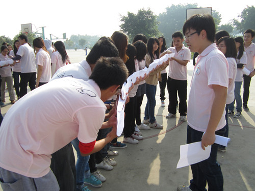 本次培训主要通过各种团队游戏,考验队长的领导能力和队员的协作能力、默契度等,达到培训的目的。首先是“传球接力”,小小乒乓球在队员们用纸张做成的纸槽中滚动,用时间在传递默契,用滚动的球传递着友谊。第二个游戏是“口是动作非”,指挥说出一个指令,大家口头上要跟着指挥念一样的口号,但动作却是相反的。随着难度的加大,干部们开始弄不清方向,搞笑的场面惹来一阵阵笑声。第三个游戏是“十人十一足”,尽管大家是初次合作,但每个人都积极配合队长的指示,团结一致,向着终点奔跑。经过一番激烈的对决,由余彦挺师兄带领的“挺哥队”荣获“团队第一名”。另外钟艺琛、严磊、张振华、曹佳楠同学还分别获得“最佳酱油帝”、“最佳内奸”等奖项。户外培训在一片欢笑声中结束。