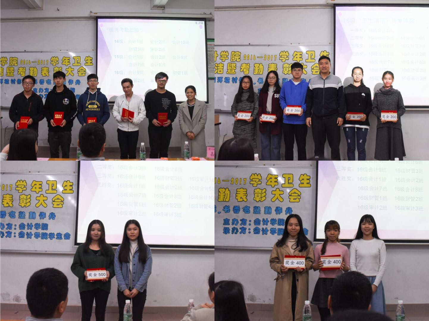 老师们分别为获奖的班级与干部颁奖