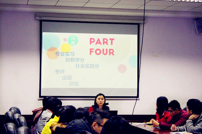接着,陈秀纯老师从生活中发生的一些例子提醒我们要在对的时间做对的事情,告诉同学们要活在当下,积极面对生活中遇到的困难;同时,也希望同学们之间能够相互关爱,班委要带动班中同学建设好的学风,并倡导大家创造更好的学习生活环境,让我们每个人用实际行动为迎头实习、就业的到来。最后,就同学们在学习、生活上遇到的问题,如专业实习、创新学分、考研、出国留学等,陈秀纯老师都作出了解答与温馨提醒。