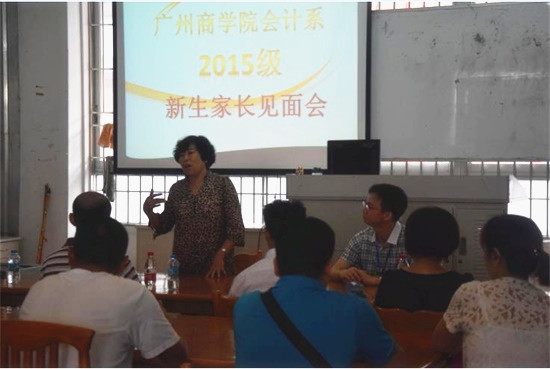 见面会上,成慕杰向新生家长的到来表示热烈的欢迎,并向家长介绍了广州商学院的发展历史,会计系师资水平、教学条件、发展前景、教育理念及专业前景等方面的情况。李锦堂围绕专业建设、毕业生就业情况及学生工作情况等方面进行了分析,希望家长鼓励学生参加社会实践以全面提高学生自身各方面素质。家长们认真凝听后,提出了一些关于教育管理制度、考证情况、宿舍分配、奖助政策等问题,成慕杰和李锦堂一一进行了解答。