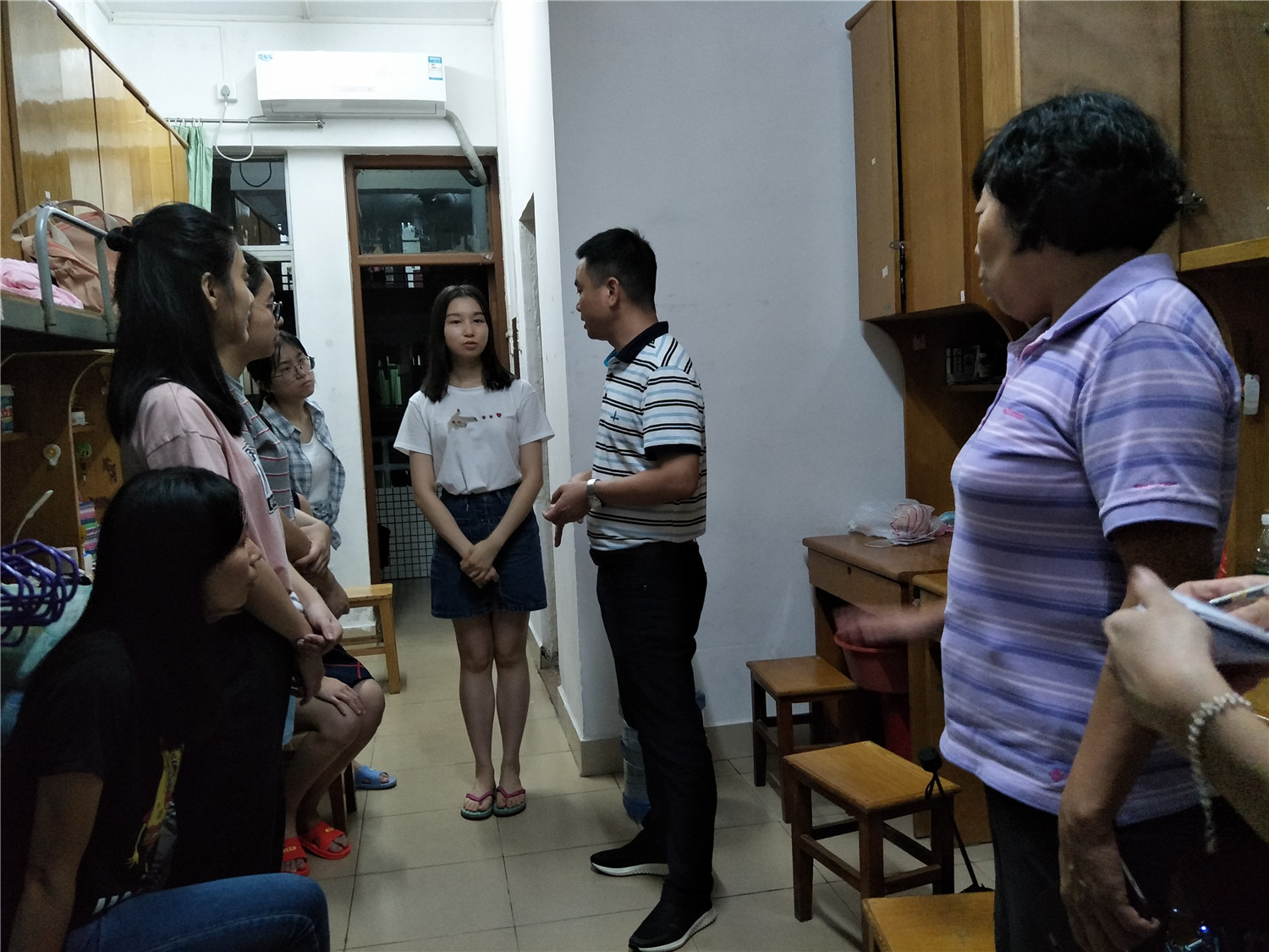 走访前,学院领导钟远辉书记做了工作指示,强调本次走访的目的,希望我们的一次来访和一句问候可以让新生感受到万象城allwincity官网的温暖。晚上七点钟,领导、老师们带领干部到达新生宿舍。院长成慕杰首先关心新生报到这一天的感受,对学校、学院的服务工作满意度,还亲切地询问学生来自哪里,叮嘱宿舍同学间要多进行沟通,尽快适应大学生活,建立和谐的人际关系,调整好,迎接大学的军训考验。党总支书记钟远辉也着重和新生们强调了新学期的人身安全,告诉学生要加强防范意识。在走访时,辅导员蓝乐钿还看到一位来自省外的学生和家长在依依不舍的道别,学生不舍地留下眼泪,始终不肯松开家人的手。辅导员和学生干部了解情况,轻声和学生及家长介绍万象城allwincity官网这个大家庭,也传达了今晚到宿舍走访的目的,带上学院领导的关怀。经过一番聊天后,学生情绪平复,也和家长道别,家长也是很放心地向老师说:“谢谢学院的老师和同学们”。