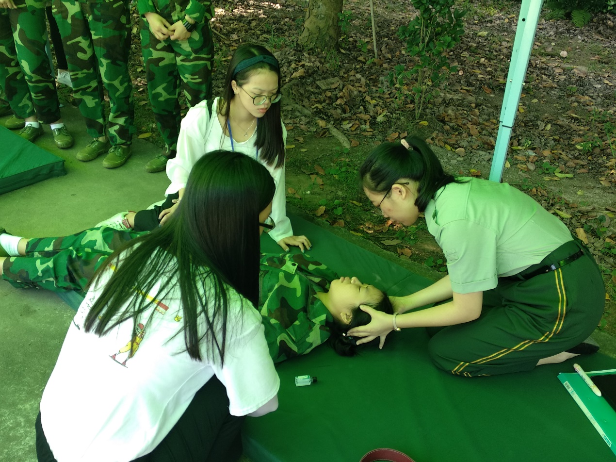 一个炎热的下午,有一位女生中暑了,嘴唇发白,学长们让她躺下,在一旁的18级辅导员谢子昀见状后立刻蹲下,细心询问哪里不适,帮她按摩头部,缓解症状,直到伤员状态渐渐恢复,辅导员紧张的心才稍稍放下。烈日下,辅导员们早已习惯了汗水浸透衣裳时的闷热,她们用心默默陪伴,用实际行动来表达对他们的关怀与照顾。